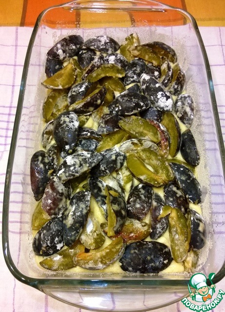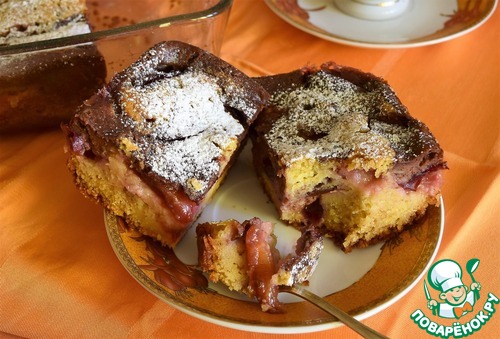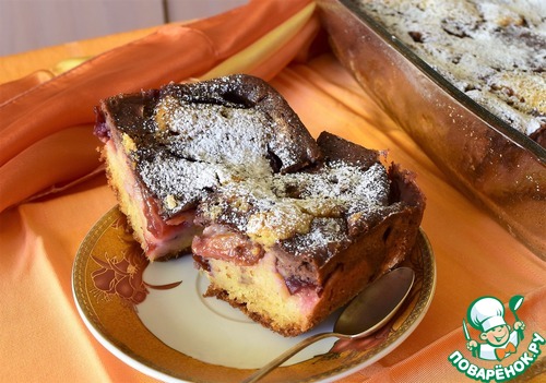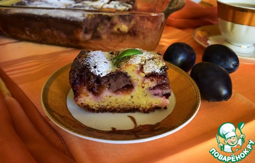 Рецепт «Кукурузный пирог со сливой в шоколадной заливке»: