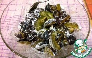 ... нарезаем на четвертинки, посыпаем крахмалом и, по желанию, слегка корицей.