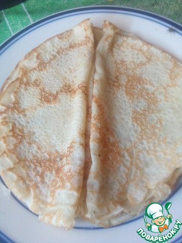 Так хочется блинчиков, но нет молока, кефира, сыворотки и так не хочется идти в магазин, тогда этот рецепт для Вас... Получается очень много прекрасных блинов для начинки мясом или творогом. Пекутся на любой сковородке, и не один блин не достаётся Комам... Рекомендую Вам приготовить эти чудо-блины.