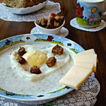 Для многих овсянка ассоциируется с джемом, сахаром, но никак не с сыром и уж, тем более, не с яйцом. И у меня также, однако, тянуло попробовать! Рецепт этот привлёк меня свой яркостью и необычным внешним видом. Да и глазунью что-то давно не готовила) Когда попробовала, была приятно удивлена! Овсяные хлопья в дуэте с сыром "зазвучали" по-новому! Они приятно дополняются хрустящими чесночными гренками, а глазунья - какой же завтрак настоящего сэра обходится без нее?)