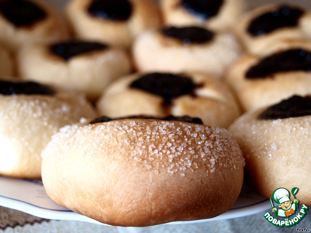 Булочки с пылу с жару. Удержаться невозможно, нужно только дождаться, пока слегка остынет джем и...