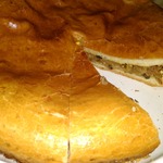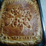 Ставим пирог расстаиваться в тёплое место. Накрываем противень чем-нибудь влажным, чтобы пирог не подсох сверху. Ждём минимум полчаса, после чего смазываем верх пирога болтанкой из сырого яйца и отправляем противень в предварительно разогретую до 200 град духовку. Выпекаем при температуре 180 град Ц минут 35 - 40. Пирог к этому моменту очень интенсивно зарумянится и вся кухня заполнится именно тем запахом, который мы и жаждали учуять (в смысле - обонять). На всякий случай проверяем и низ пирога. Если низ уже подсох и подрумянился - пирог пора вынимать, пересушивать его не надо.