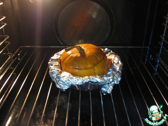 • Через 30 минут достанем нашу тыкву, освободим верх от фольги и поставим в духовку еще минут на 5-10