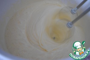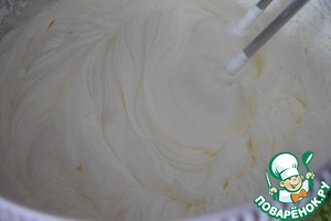 Взбиваем сливки с 2 пач. ванильного сахара и 3 ст. л. сахара. У кого обычные сливки, рекомендуется добавить 2 пачечки закрепителя для сливок. На сливках не экономим, берём хорошего качества - для взбивания. У меня сливки растительные от Rama - они в закрепителе не нуждаются, "стоят", как надо! -