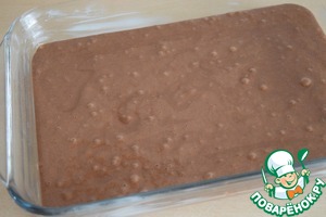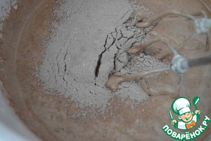 Смешать муку, какао и разрыхлитель. Просеять через сито.