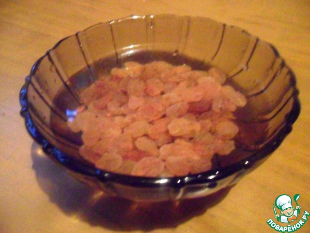 • Изюм промыть, залить горячей водой и оставить на 10 минут.