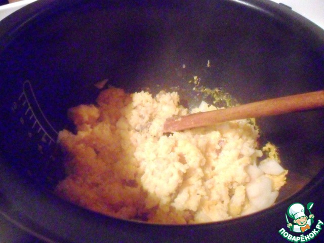 • Тыкву вымыть, очистить и положить в чашу мультиварки. Перемешать. Включить режим "Каша" на 20 минут.