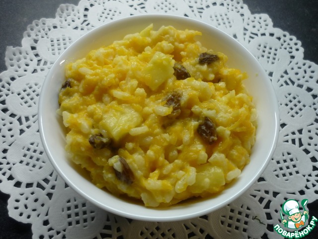 Машенька! Хочу поблагодарить за чудесный рецепт. Очень понравилось сочетание риса и пшена. Тыква и яблоко с изюмом прекрасно дополняют друг друга! Я вместо сахара добавила мед. Буду готовить еще непременно.
