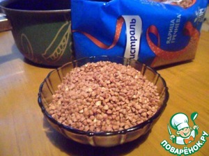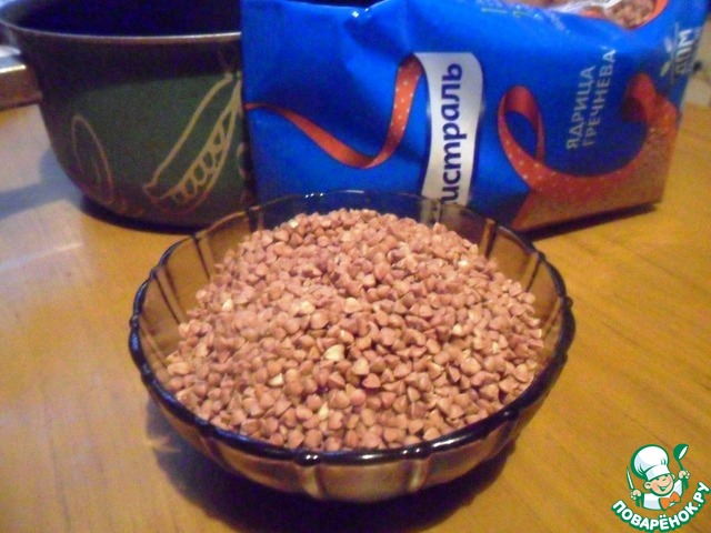 Отмерить 1 стак. гречневой крупы и 2 стак. воды.