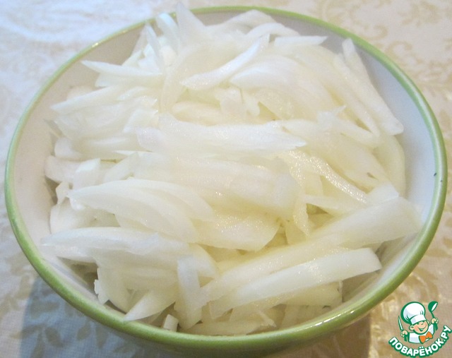 • 5. На горячую сковороду выливаем масло. И высыпаем лук.