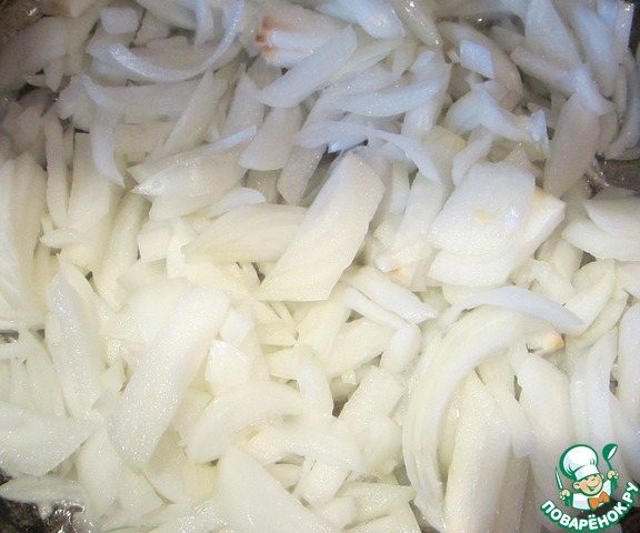 Помешивая, жарим на среднем огне 3-5 мин. Лук должен впитать масло.