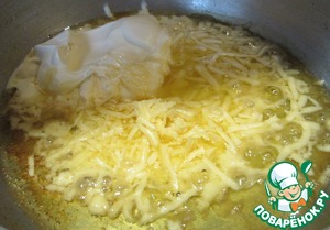 • Трем на терке сыр. Соединяем с бульоном и помешиваем.