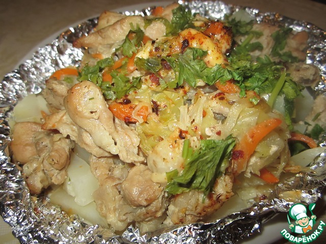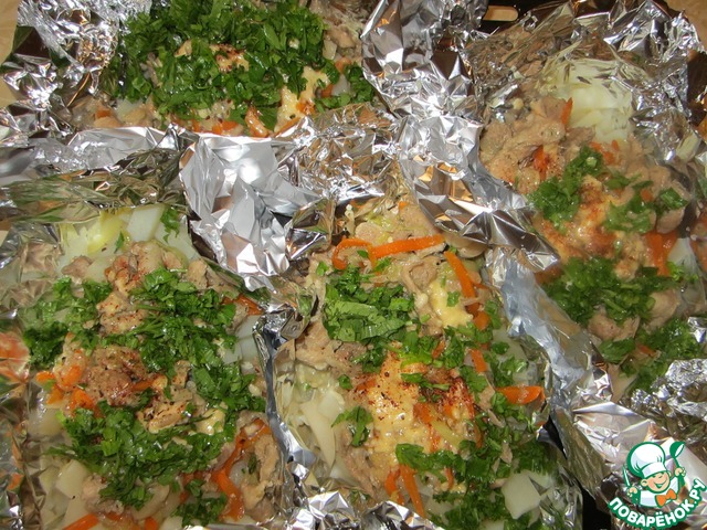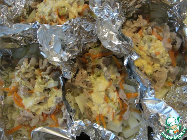 Всего по количеству продуктов в рецепте получилось 4 горшочка. 2 вчера и 2 сегодня. Но мои домочадцы съели с удовольствием. Соус очень классный. Взяла на вооружение. И спасибо за рецепт.