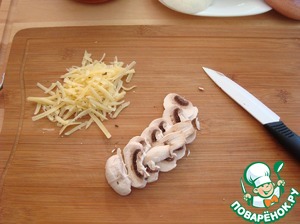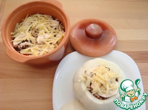Выложила поверх каши шампиньоны и присыпала сыром.