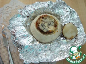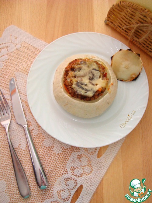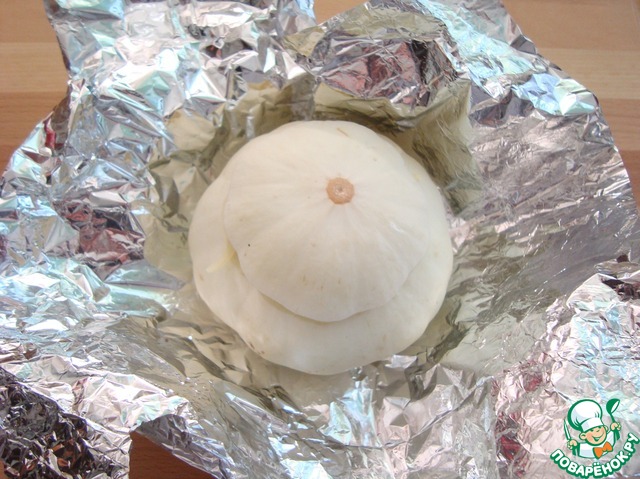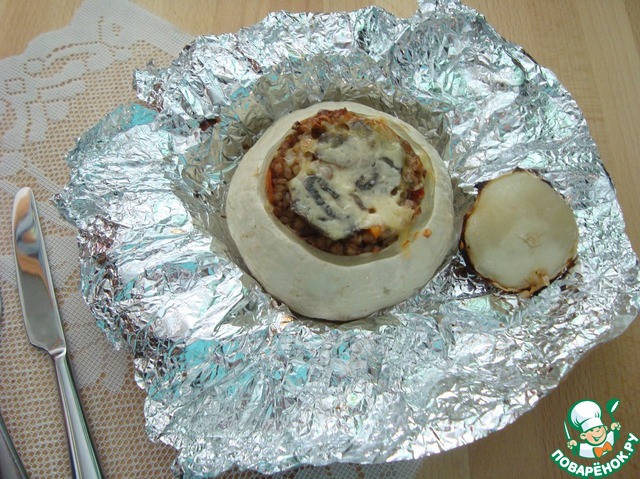 Кашу в патиссоне через пол-часа вытянула, раскрыла и ещё поставила на 10 минут зарумяниться, развернув фольгу и помазав патиссон сверху маслом.