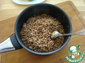 Каша готова. Выкладываем её к овощам. Вот тут вроде и всё. Можно есть и в таком виде, подержав ещё минут 10 на огне сковороду.