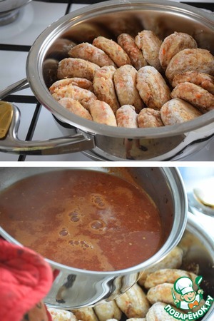 Огонь отключаем, выкладываем в сотейник все котлетки (бочком), как на фото.