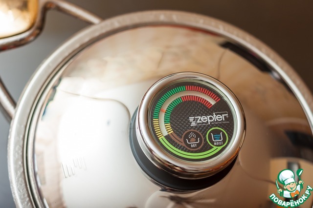 Накройте посуду крышкой, стрелка на термоконтроллере начнет сдвигаться с желтого поля на зеленое.