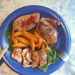 По желанию готовое блюдо можно посолить, но я этого делать не стала. Удивительно, но мне это совсем не понадобилось, мясо было превосходное - сочное, нежное, его вкус отлично дополнялся соусом и фруктами! Пожалуй, с такой посудой я смогу наконец перейти на бессолевую диету))