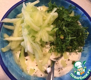 - Огурец (натертого на крупной терке) — 2 ст. л.
