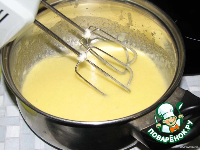 Готовое изделие остудить на решётке, затем разрезать на 2 коржа.