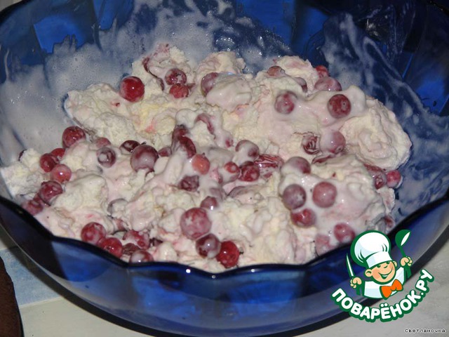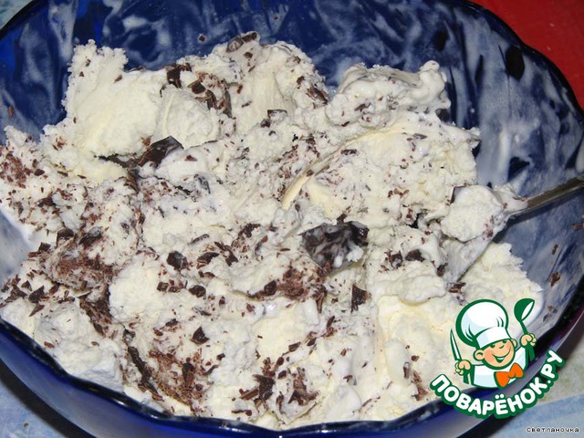 Дать мороженому немного оттаять, после чего быстро и тщательно перемешать с начинкой. В нашей семье все вкусы разные, поэтому я готовила 3 начинки: мороженое с шоколадной крошкой, -