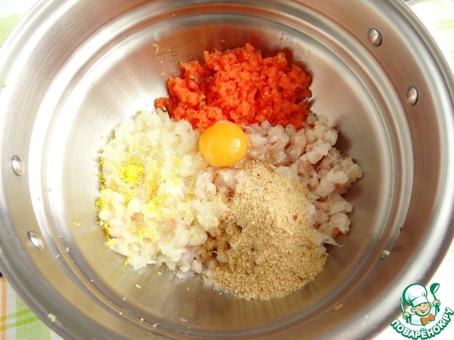 Добавляю яйцо, панировочные сухари, цедру лимона.