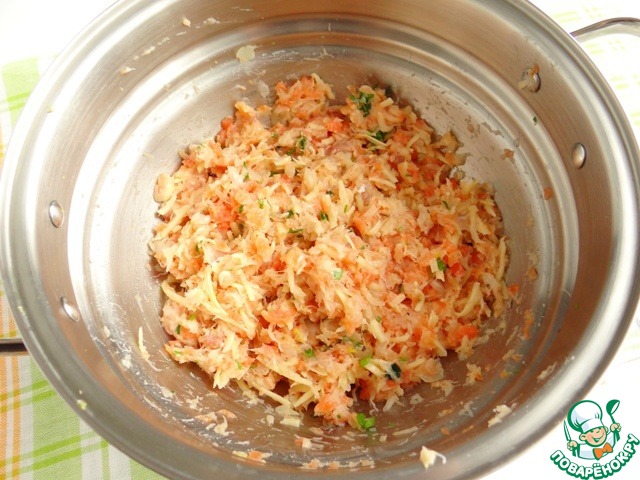 Сыр натираю на крупной терке, нарезаю петрушку, добавляю в миску, посыпаю молотым черным перцем.