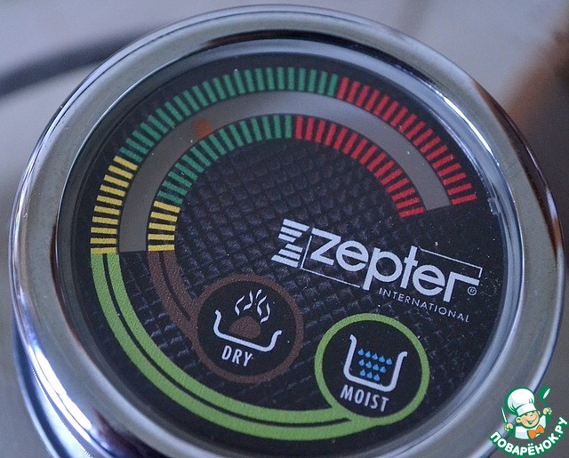 Когда стрелка доходит до середины шкалы - нужная температура уже есть внутри кастрюли, огонь уменьшаем и готовим еще не более 15-20 минут.