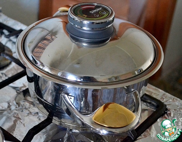 Кладем тесто в кастрюлю, закрываем крышкой и ставим на небольшой огонь.
