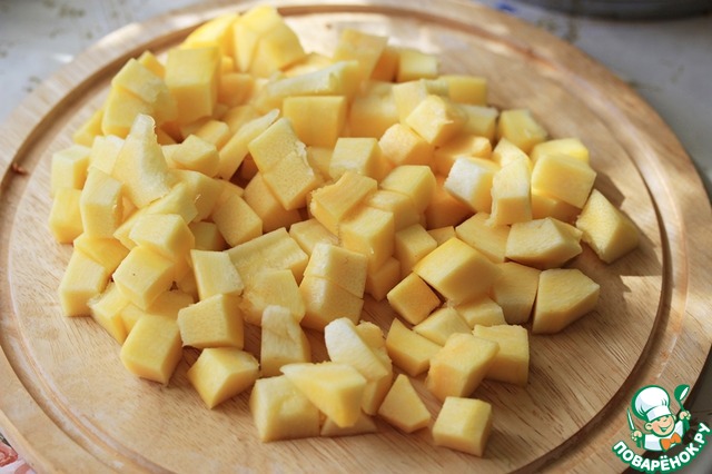 Кабачки очистить от кожицы и семян, нарезать кубиками.