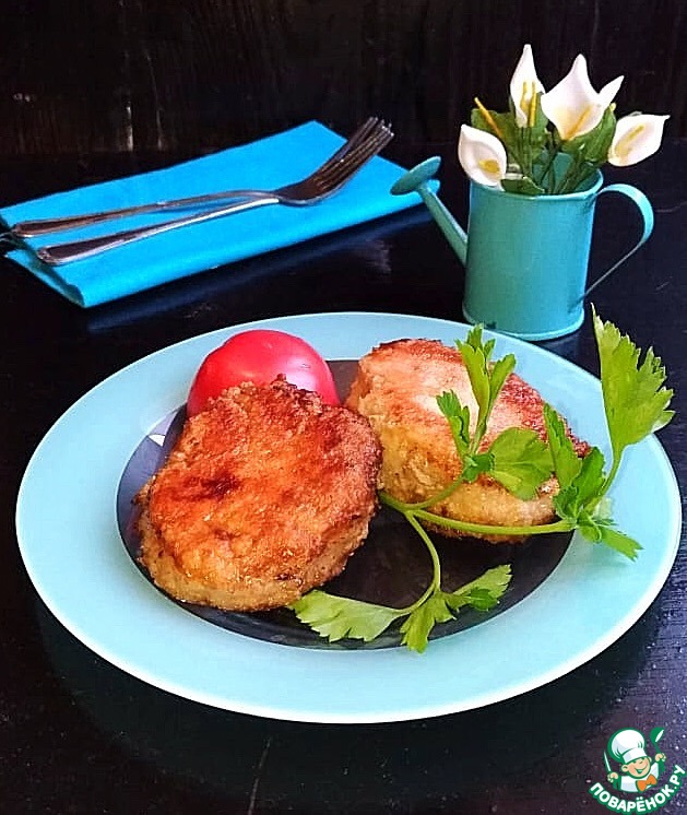 В сковороде разогреть масло. Котлеты панировать в сухарях и выкладывать на горячую сковороду.