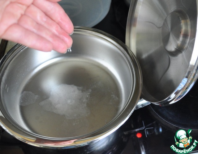 Сотейник Zepter ставим на плиту и нагреваем на среднем огне. Готовность проверяем, брызнув водой на поверхность разогретого сотейника, если вода раскатывается шариками -"жемчужинами", то сотейник готов для жарки.