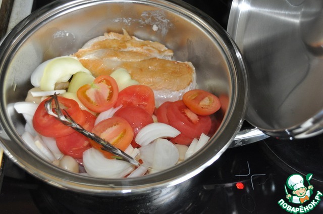 Снимаем крышку с сотейника. Курица по-провансальски готова!