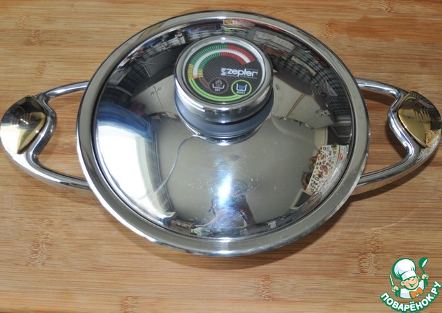 Нагреваем сотейник до середины зелёного поля термоконтроллера на крышке.
