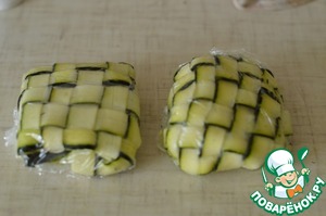 С помощью пленки обернуть рыбу плетенкой. Аккуратно пленку снять.