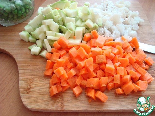 Доводим бульон или воду до кипения и выкладываем овощи сразу все.