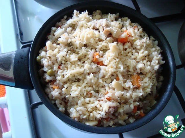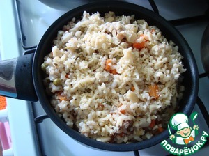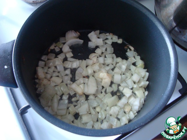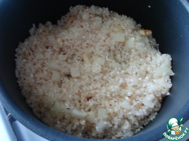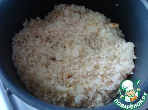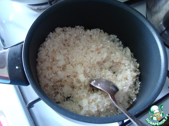 Выкладываем рис и делаем, помешивая до тех пор, покак рис не будет как бы прозрачным ("стеклянным").