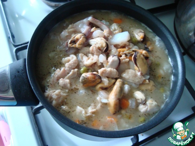 Рецепт «Ризотто с мидиями и кальмарами»: