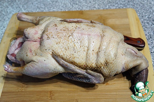 Утку разрубить на порционные куски.