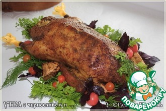 Очень праздничное и вкусное блюдо! Единственная ошибка, которую я допустил, состояла в следующем. Фермерскую утку нам продают вместе с потрохами – желудок, сердце, печень. Обычно я их готовлю отдельно, это немного, но очень вкусно. На этот раз решил приготовить вместе с уткой – и сложил сверху. Время приготовления для мяса утки и потрохов требуется разное, и потроха получились жестковатыми. Их лучше укладывать на противень в самый низ, тогда все будет в порядке.