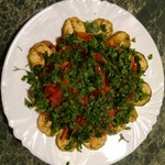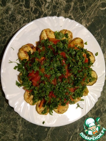 Петрушку мелко рубим. Овощи выкладываем на баклажаны, посыпаем рубленой петрушкой (или кинзой, если любите), оставляем на 10 минут пропитаться. Подаем теплым к шашлыку. Вполне себе самостоятельное блюдо, вкусно и в холодном виде, посему можно приготовить заранее и взять с собой на пикник. Разогреть его легко на решетке, упаковав в фольгу.