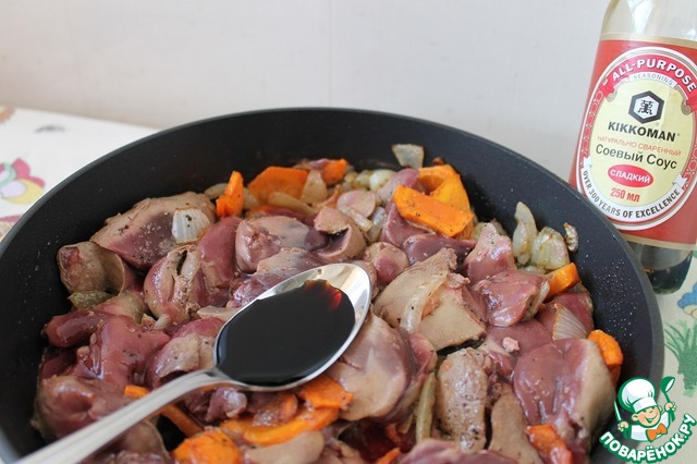 • Затем добавить соевый соус, перемешать и готовить до готовности печени. Остудить до теплого состояния.