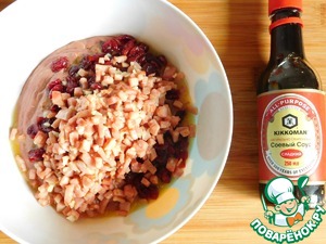 Ветчину нарезаем на очень-очень мелкие кубики.