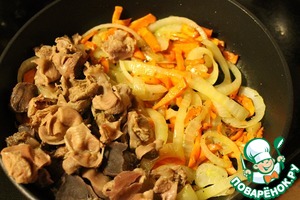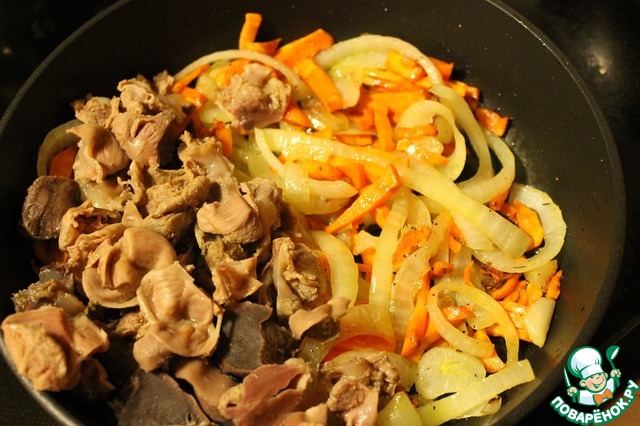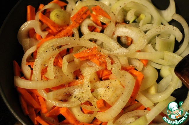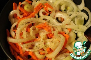 Посолить, поперчить, добавить сахар, обжарить до прозрачности лука.