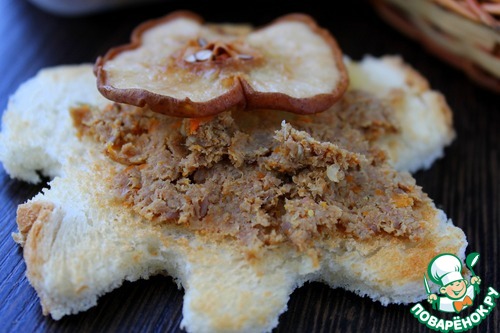 Это любимый паштет моего мужа. Очень вкусно его кушать с яблочными чипсами и сладким чаем. Угощайтесь!