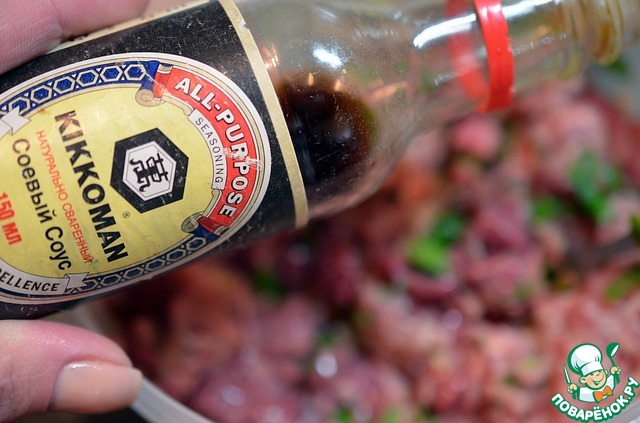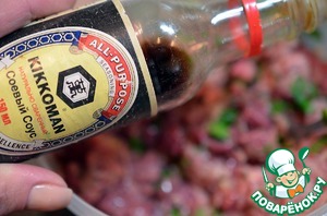 Соевый соус, посолить, поперчить. У меня соевый соус Kikkomаn.