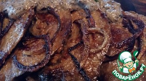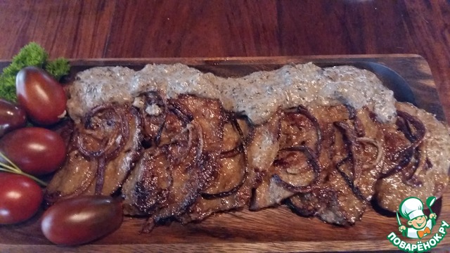 Печень я украсила карамелизированным луком.