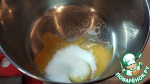 Готовим заливку: в желтки добавляем сахарозаменитель