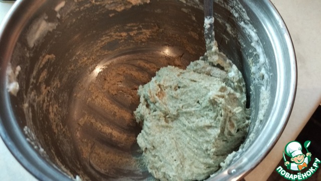 Постепенно добавляем муку. Консистенция должна быть густой, чтобы можно было распределить по форме и сделать бортики